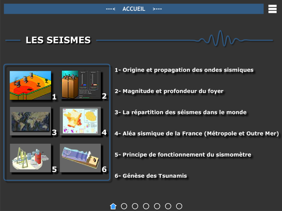 1- ORIGIN AND SPREAD OF SEISMIC WAVES: animation showing the origin of seismic waves (home) and loss of intensity when propagating from the epicenter.