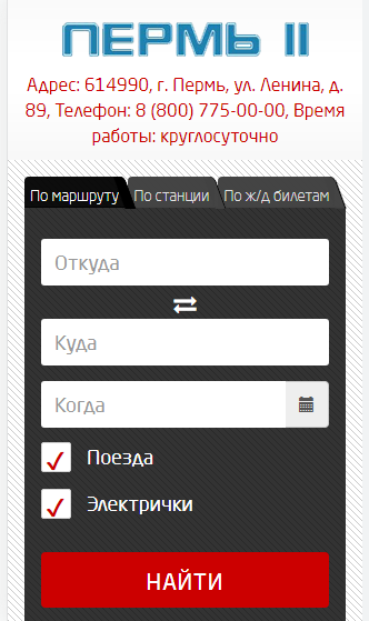 In the application of the Perm-2 station, you can book tickets for Russian Railways trains.