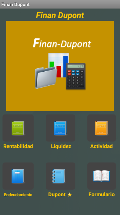 La aplicación tiene un menú principal que asignan cada conjunto de ratios