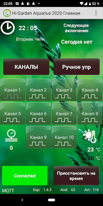 This is the second generation version of the application, in which the functionality is significantly expanded. Compared with the previous release, it was added: control over the Internet via Wi-Fi, the pulse irrigation function is implemented on any channel.