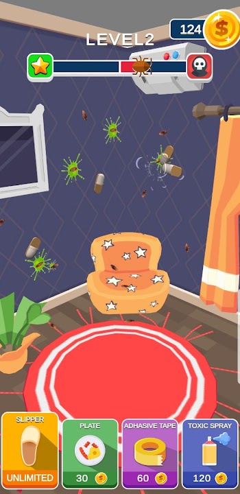 You need to crush the cockroaches on the screen and destroy them all! Complete all the levels and earn the maximum score in the game where you need to kill cockroaches.