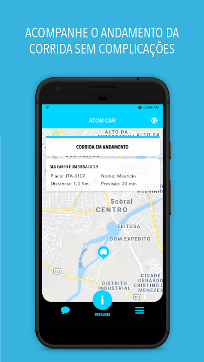 Nosso aplicativo permite que você chame um de nossos veículos e acompanhe o deslocamento do carro no mapa, sendo avisado quando ele estiver na sua porta.