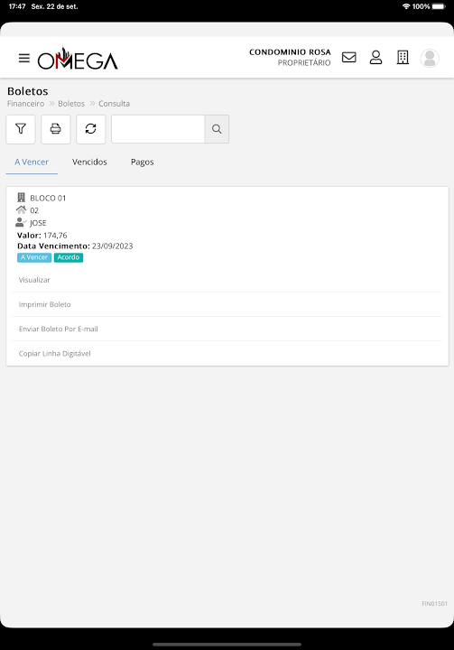 This application is exclusive to Omega Administradora de Condomínios users.