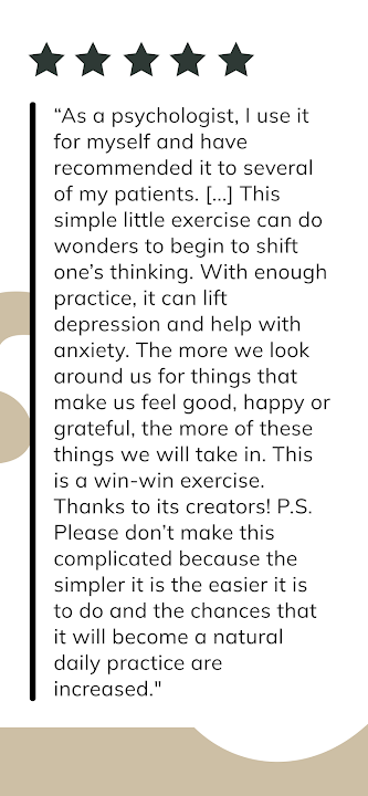 Thank you for choosing this free app of journey of gratitude, journaling, and self-discovery. We believe that our daily gratitude journal will affirm the joy in your everyday life, feeling grateful and thankful, through guided self-care journaling.