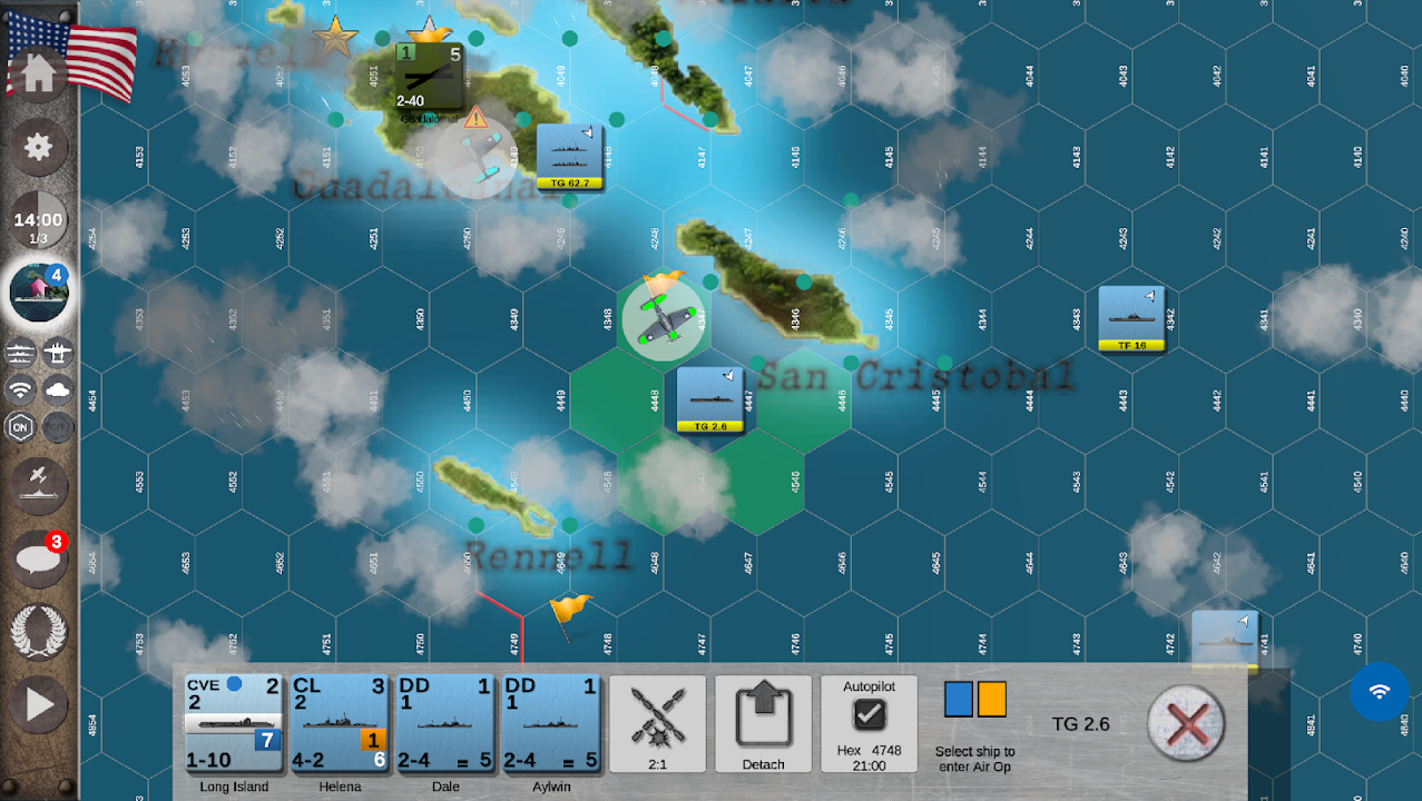 • 11 historical scenarios: Coral Sea May 42, Midway June 42, Eastern Solomon Aug 42, Santa Cruz Oct 42, Guadalcanal Dec 42, Bismarck Sea March 43, Rabaul 1943, Operation Ke Feb 1943, Watchtower Aug.42, US Raids Mar 42, Wake Dec 41