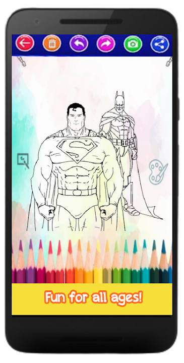 This Super Hero Coloring Book App recommended for Kids and all ages, has collection of Super Hero White Image ready to coloring with Features: