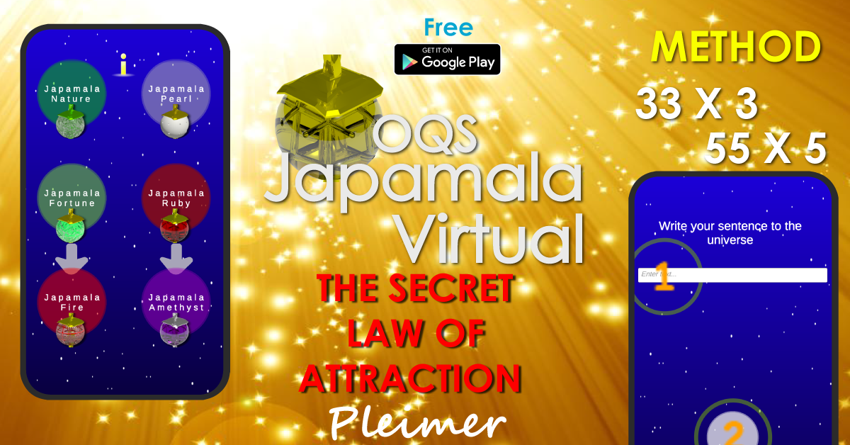 Discover profound transformation with the OQS Japamala Virtual app! We now introduce the new 33 x 3 and 55 x 5 modules, powerful techniques to manifest your deepest desires. Soon, we'll have even more features, including the awaited dream map to visualize and achieve your goals, guided meditation and yoga sessions for inner balance, and the Universe Bank, where you can attract all the wealth and cosmic prosperity.