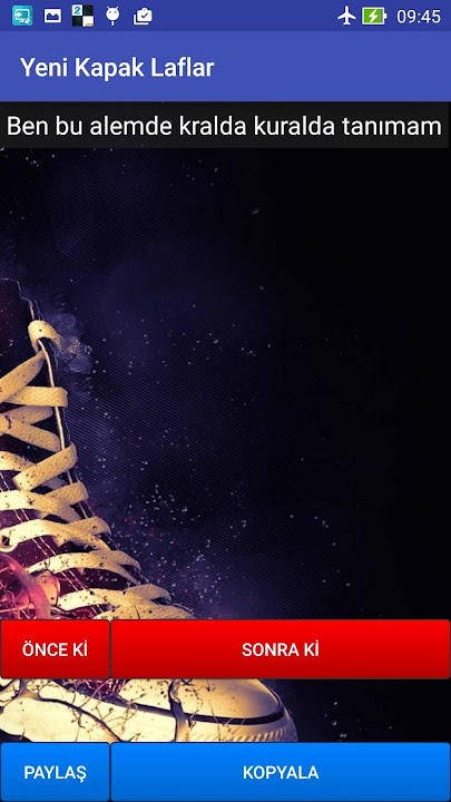2016 yılında yazılmış güncel kapak laflar sözler bu uygulamada derledik.Onlarca sözü istediğiniz gibi istediğiniz yerde okuyabilir dilerseniz paylaşabilirsiniz.İnternet gerektirmez istediğiniz yere cebinizde taşıyabilirsiniz :)