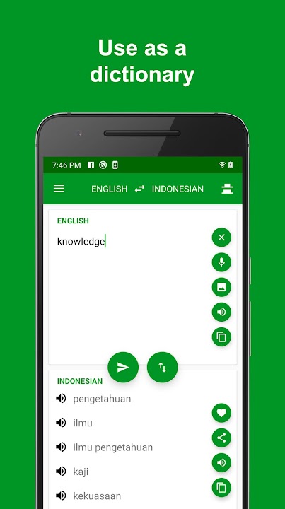 Indonesian - English translator is an application that help you lookup dictionary and translate words and sentences from Indonesian to English, or translate English to Indonesian too. This translator is free and you are able to translate words or sentences quickly, conveniently and easily.