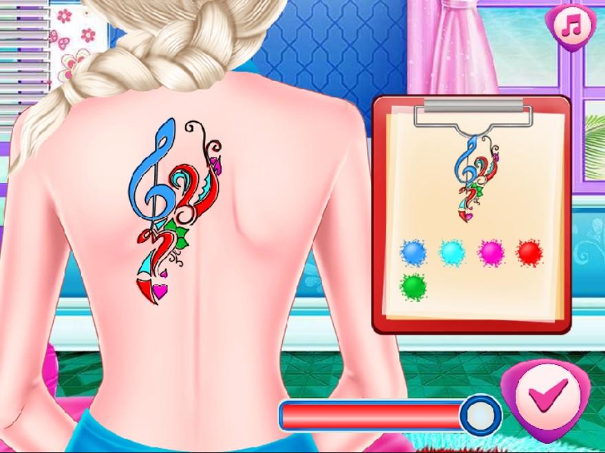 play the game to get fun experience in tattoo tycoon and use tattoo simulator, princess girls want tatoo