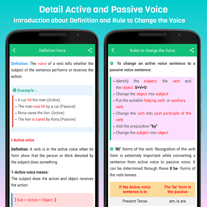 All Active and Passive topics in English practice covered in depth and in a most simple way. You will get information about: