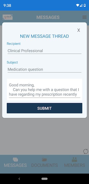Members can initiate sending messages to clinical professionals for healthcare related questions.