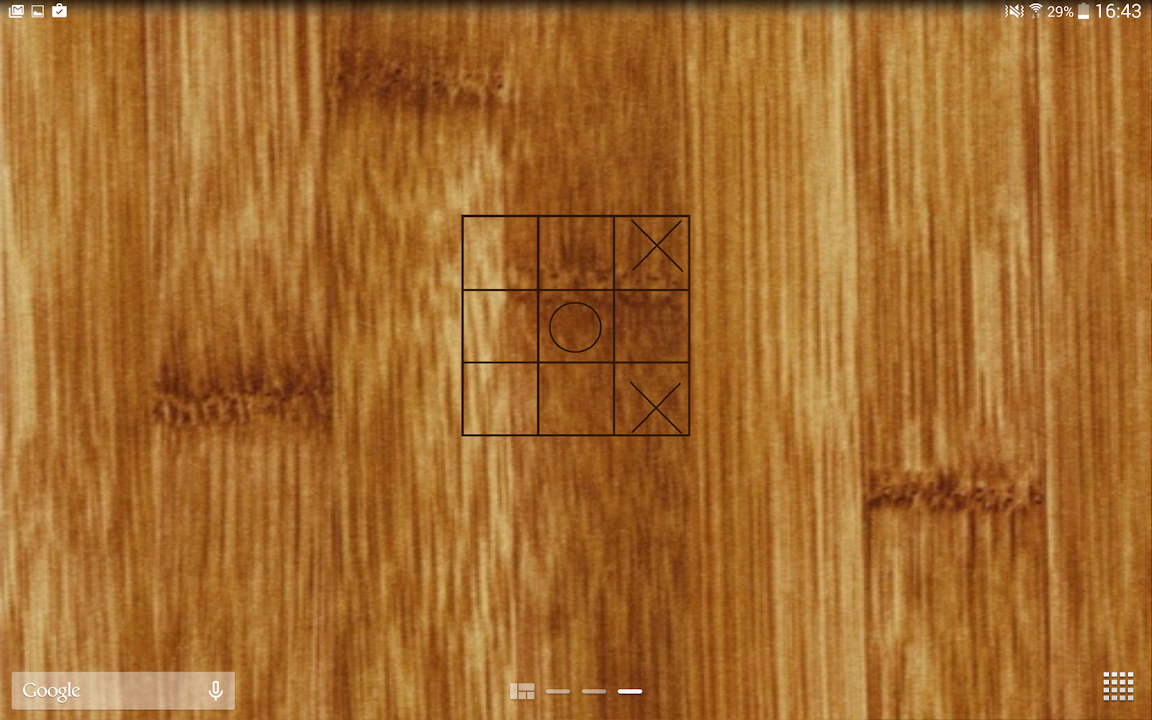 Play Os and Xs on your phone without opening an Application! This application renders a grid on your wallpaper, and then, whenever you want you can play Os and Xs.