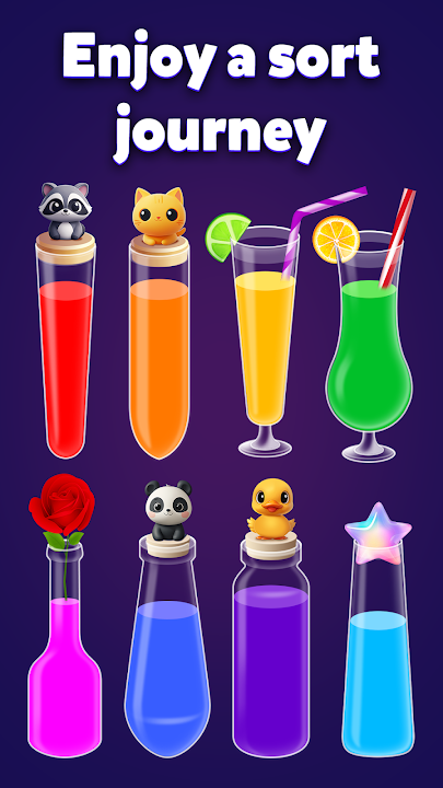 - Infinite replay value: Every time you restart the game, the arrangement of liquids in the bottle will be randomly generated, ensuring the freshness of the game.