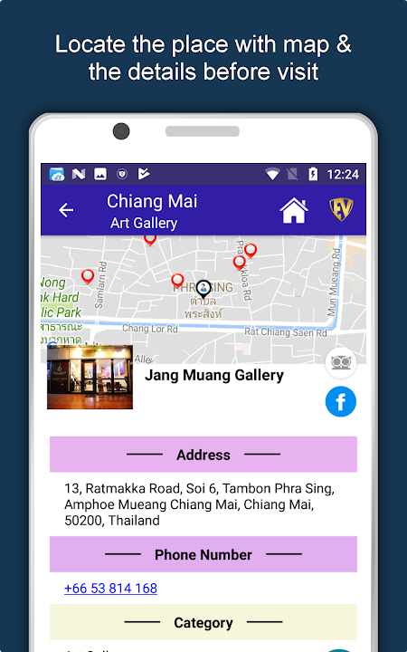 Apart from this, Chiang Mai Travel & Explore guides you Why, When and How to visit various places in Chiang Mai with precise location on the detailed Map. There are two ways to explore this app - Category view and EduBank favorite places view. Pin your destinations and get the routes on the Map. Not only this, you can see exactly how the places look like with Street View integrated in this app. The app also has a feature to Rate and write Review/Experience regarding entity(s) through Login. Your Travel experience and rating will help the user community.