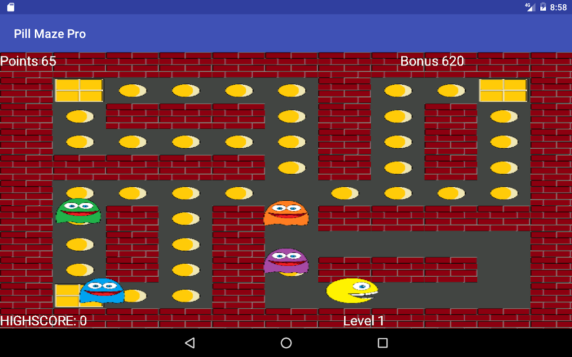 Since the 80s are not dead, here is a little game with a hungry yellow knob that eats pills. The pills are spread around in a mysterious maze that is haunted by four nasty ghosts.