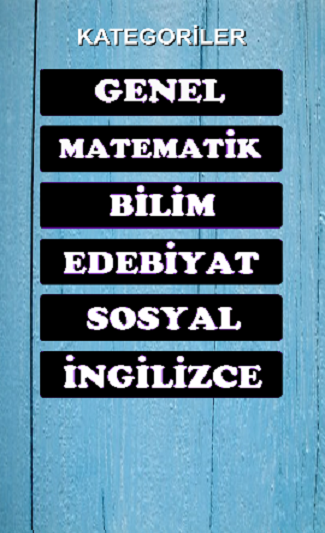 Genel kültürden matematiğe, fen bilimlerinden sosyal bilimlere 6 farklı kategorideki hem eğlenceli hem de eğitici sorulara doğru yanıt ver puanları topla. Uygun cevapları bularak puanlarını katla. ( Tabiki takıldığın soruları puanlarınla atlayabilirsin;))