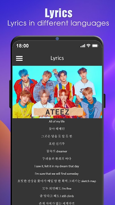 ATEEZ Lyrics is a new and unique 2-in-1 entertainment application. This app provides lyrics to ATEEZs biggest hits in Romanization, Korean, and English. Turn on your favorite songs, see the lyrics, and sing along with ease. Its interesting, isn't it?