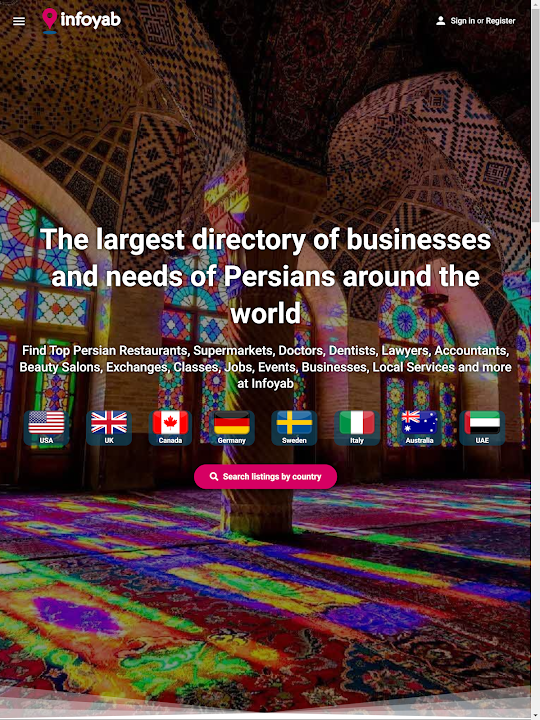 Explore nearby Persian restaurants, supermarkets, doctors, dentists, lawyers, accountants, beauty salons, exchanges, classes, jobs, events, businesses, local services and more at Infoyab.