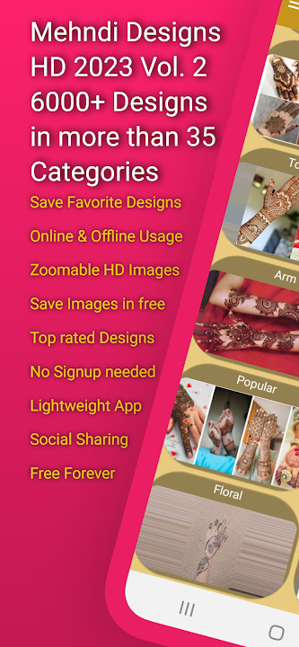 Mehndi Design 2023 is used by famous mehndi/makeup artists and is their favorite mehndi design app. Download this app and make your hands beautiful like never before. Mehndi Design 2023 has the latest Mehndi designs for all cultures. This app includes Pakistani Mehndi Designs, Indian Mehndi Designs, Arabic Mehndi Designs, Indo-Arabic Mehndi Designs, African Mehndi Designs, Moroccan Mehndi Designs, Western Mehndi Designs, Indo-Western Mehndi Designs, in following categories.