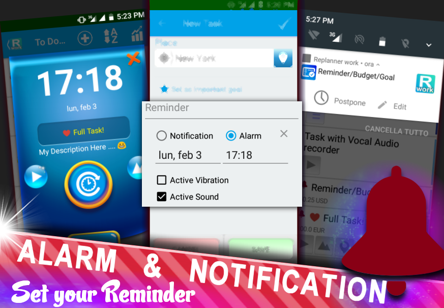 + Setting a reminder to remember your important tasks with Notifications or Alarms