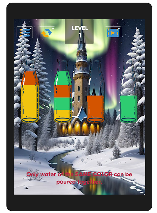 2. Tap a bottle to pour its contents into another, but remember: you can only pour water of the same color, and each bottle should be filled with just one color.