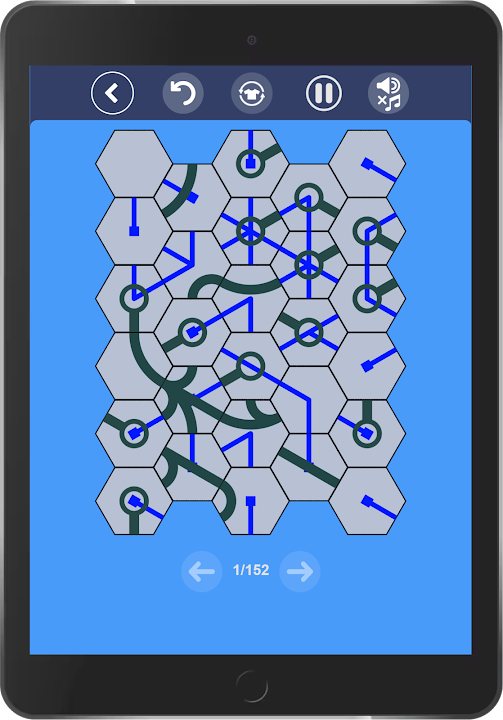 Connect the pattern inside the hexagon block cells to solve the puzzles. Tap any of the Hexa's to rotate them until the pattern, line, or pipe inside the Hexa block matches and connects each end to the pattern, line, or pipe in the Hexa's connected or next to it. No loose ends are allowed, the entire puzzle must match and be completely connected After each round, the following puzzle will grow with more Hexa's which will increase the difficulty of game.