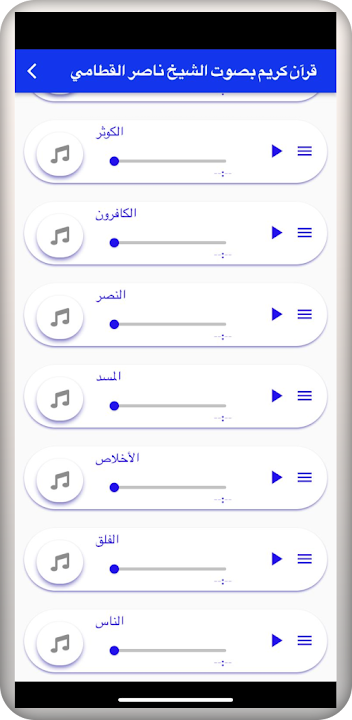 ارح نقفسك وقلبك وسمعك وجميع جوارحك واضبطها مع تطبيق قران كامل بصوت القطامي بدون نت , الذي يقدم لكم سماع اجمل آيات كتاب الله والسور مرتبه كامله بصوت الشيخ العذب الطاهر , مقدما لكم اياه بأجمل التصاميم واكثرهها سهوله وبحجم تثبيت ضئيل يغنيك للبحث عن السور بشكل منفرد وقت حاجتها في المواقع الاخرى , كما ويتيح لك فرصة مشاركة السور عبر مختلف مواقع التواصل وعبر الحالات , ولك الاجر والثواب ان شاء الله بذلك , والآن حمل تطبيق قران كامل بصوت القطامي بدون نت , واستمع اليه وانصت .