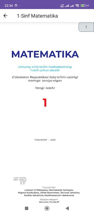 Matematika fanidan 1-sinfdan 4-sinfgacha bolgan eng oxirgi darsliklar tolami