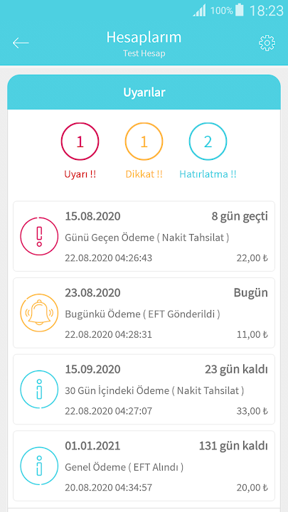 You can add your payments or collections that you cannot process to the account sections in the application within a certain period of time and in a certain number. You can add a single transaction like any bill payment, or you can add multiple and sequential transactions such as bank loan installments.