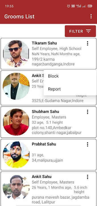 Sahu Samaj Matrimonial, Shubh Sankalp, Free Matrimonial, Bharat Matrimonial,Sahu Shaadi, Sahu Jeevansathi, Matrimonial, Rishta Matrimonial, Marriage, Marriage Biodata,Sahu Sangam, Sahu Parinay, Sahu Rishtey, Vivah ,Sahu Vivah application can help the user to find their life partner easily. By easily registering into the app, users can create their profile and can get access to the various available profiles. In this app we have multiple filters for the Groom/Bride required, we can use those filters and search. Also we have implemented the Report and Block functionality, If someone create their account just to get Brides contact number then Admin can block their profile and They can not see any other profile except their own.