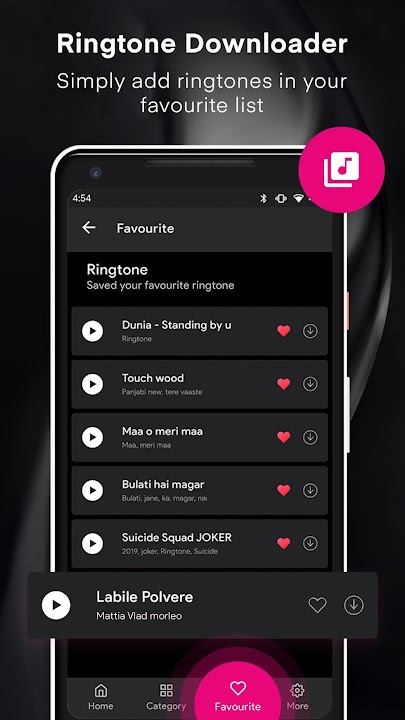 ❤ Possibility to put your selected Ringtones or sung in your favorite list.