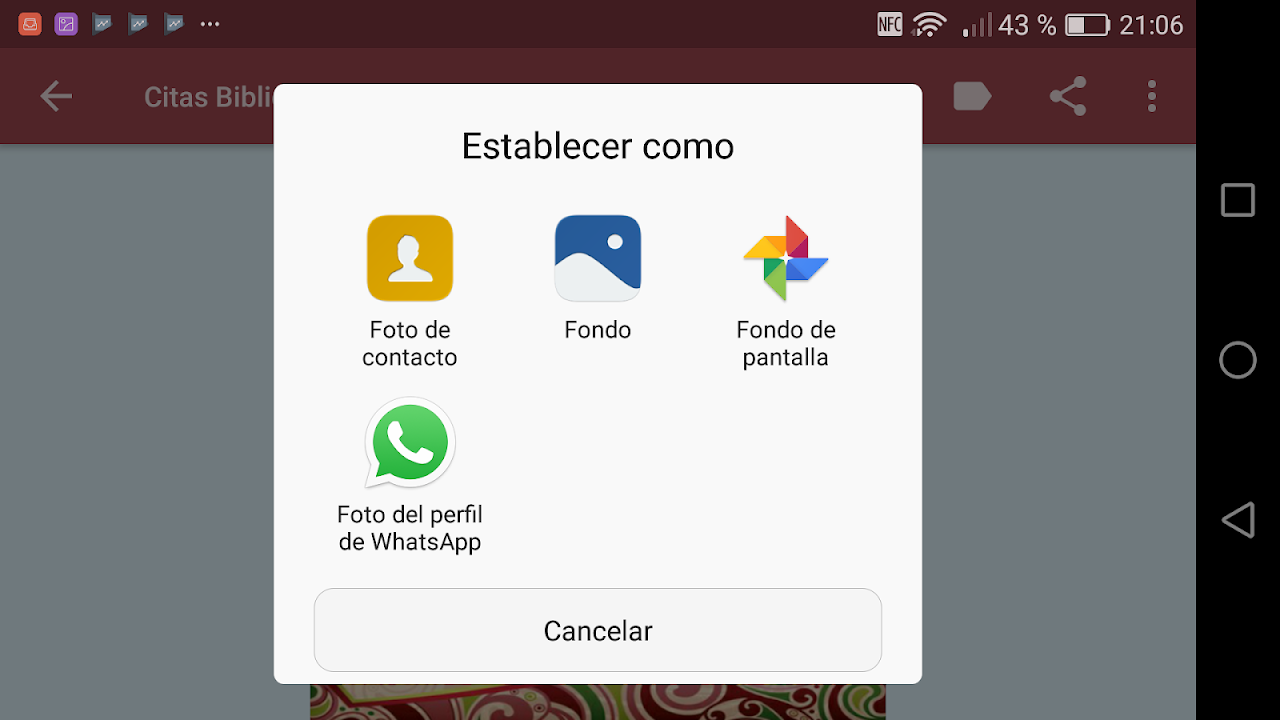 - Puedes descargar las imagenes con la opción establecer imagen como... y sin hacer más la tendrás ya en tu galería
