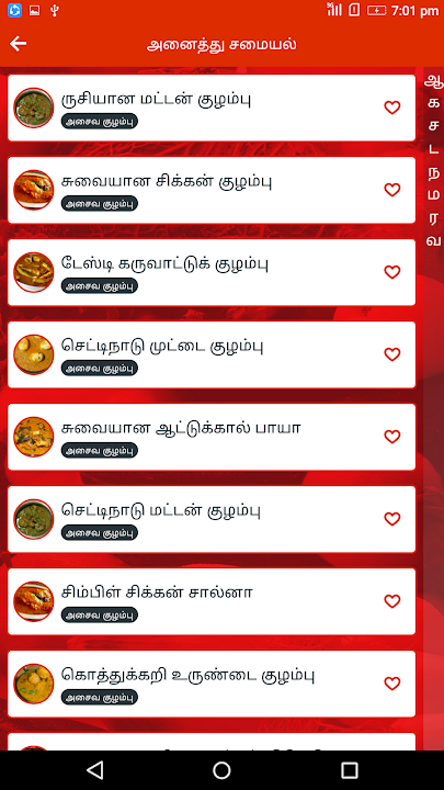 All tastes of Gravy Recipe are in this one application like Chicken Gravy ( சிக்கன் குழம்பு ), Mutton Gravy ( மட்டன் குழம்பு ) , Crab Gravy (நண்டு குழம்பு ) , Fish Gravy (ஃபிஷ் குழம்பு) , Prawn Gravy ( இறால் குழம்பு ) and more NV curries are available.