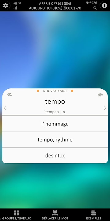✔️ Words are displayed with translation options. When choosing the correct translation, the word receives one point. When a word reaches 10 points, it will move to group G2. Every additional 5 points moves the word to the next group. The user can independently move the word to the selected group. If you choose the wrong translation, the word will return to the first group G1.