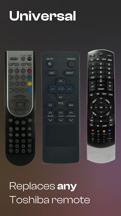 So why wait? Download Remote Control for Toshiba TVs today and start enjoying the benefits of a virtual remote with your smartphone.