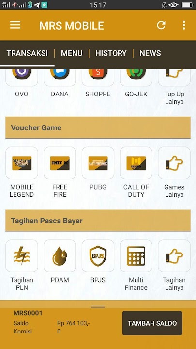 Aplikasi android MRS MOBILE adalah aplikasi mobile gratis untuk member-member setia MRS MOBILE di mana pun berada. Aplikasi ini memudahkan Anda dalam melakukan berbagai transaksi seperti pengisian pulsa, pembelian token listrik, pembayaran tagihan pasca bayar, pembelian voucher game, dll.