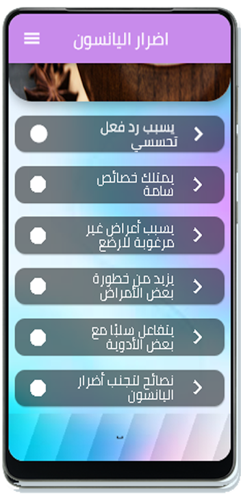 تطبيق عن اضرار اليانسون حيث يوجد له فوائد و له اضرار ايضا