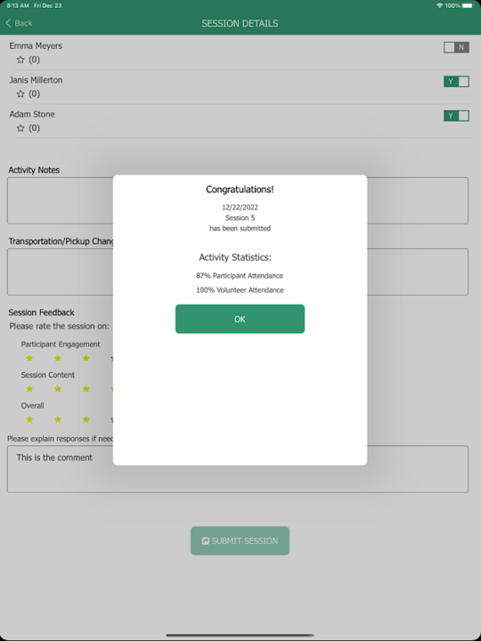 • Easily track attendance for all participants and volunteers in each session of the program.