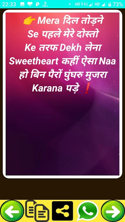 3.you can share the status ,shayari directly to whatsapp easily.