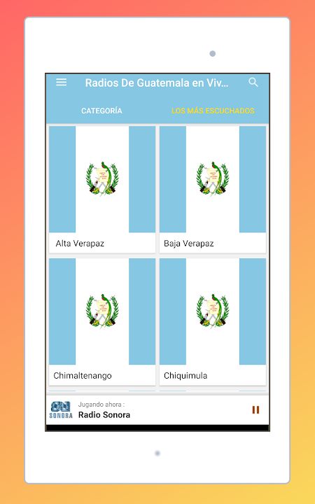 The home screen and interface of this Guatemalan radios application is elegant, and most importantly, it is very easy to use. As a user, you don't have to search for normal radio frequencies. just touch the name of your favorite radio and start listening live.