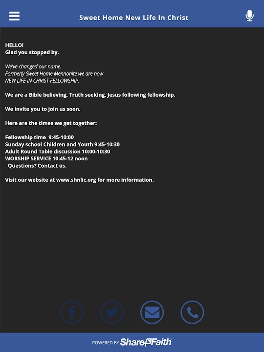 Down load our church app to stay in touch and up-to-date with current news, events and teaching at Sweet Home New Life In Christ Fellowship.