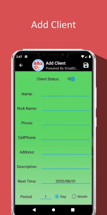 It is an application that remind you which client already arrived the time to return to visit, you can also make a note of the last visit.