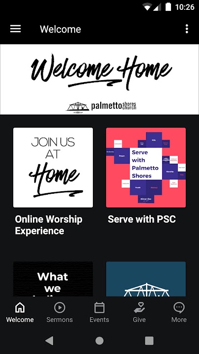 The Palmetto Shores Church App was created with the Subsplash App Platform.