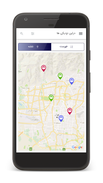 ۲- بسته به موقعیت شما، نزدیکترین محلهای خدمات را میتونید مشاهده کنید. مثلا نزدیکترین رستورانها به محل کار شما.