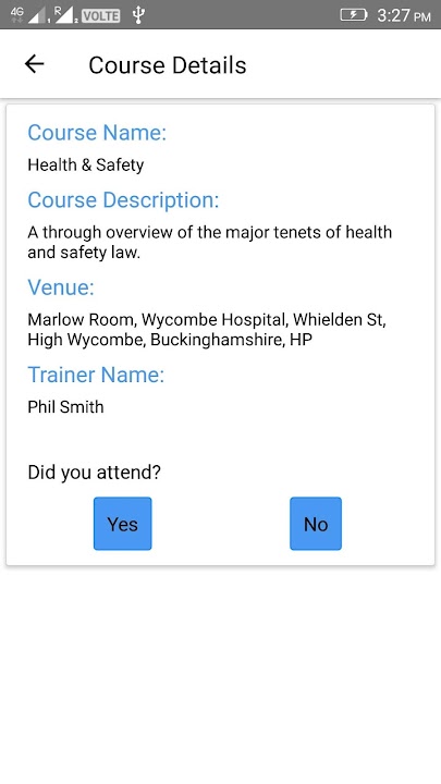 Simple but powerful course registration capability via the mobile app. Users can select a course venue and date to suit their own timetable.