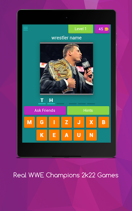 In the game, there are multiple LEVELS with images of acclaimed Wrestler individuals — which are very well-known faces. Each level contains one positive calling. Gather coins, use them for taking clues, and complete the game 100%!