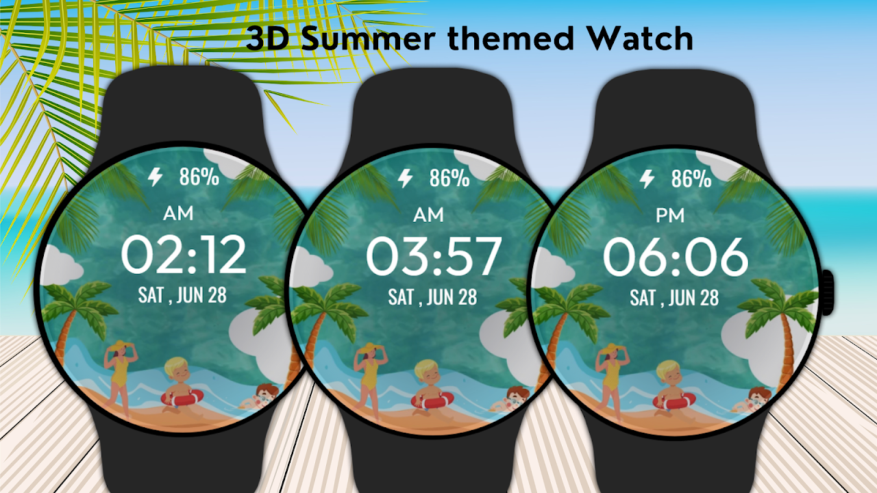 Dive into summer with the 3D Summer Watch Face—a lively and animated