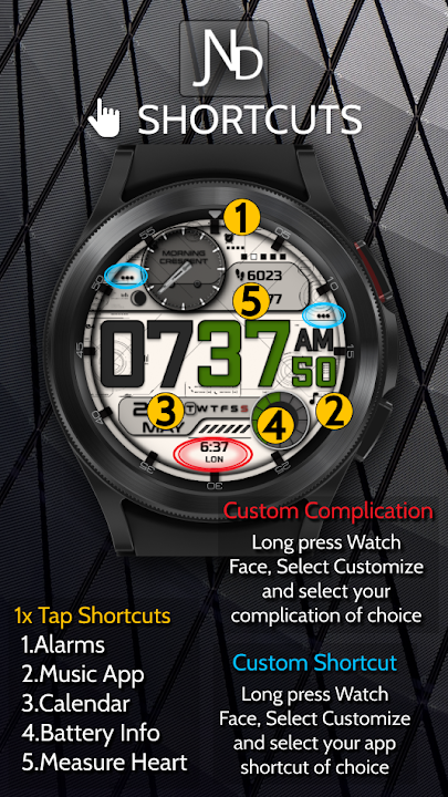 The JND0011 is a modern looking bold digital watch face with a large easy to read display and an Analog dial. Features include, 5 Shortcuts, 2 Customizable shortcuts, 1 Customizable complication, 5 Theme options, Moon information, Battery, Date, Steps & Heart rate. The face includes 12 & 24Hr versions. A dark always on display ensures great style and battery life. Thank you.