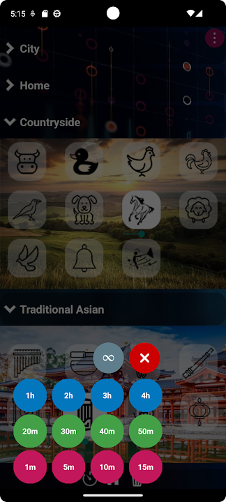 - Traditional Asian sounds (Tibetan Bowls, Chimes, Cicada, Gong, Om etc.)